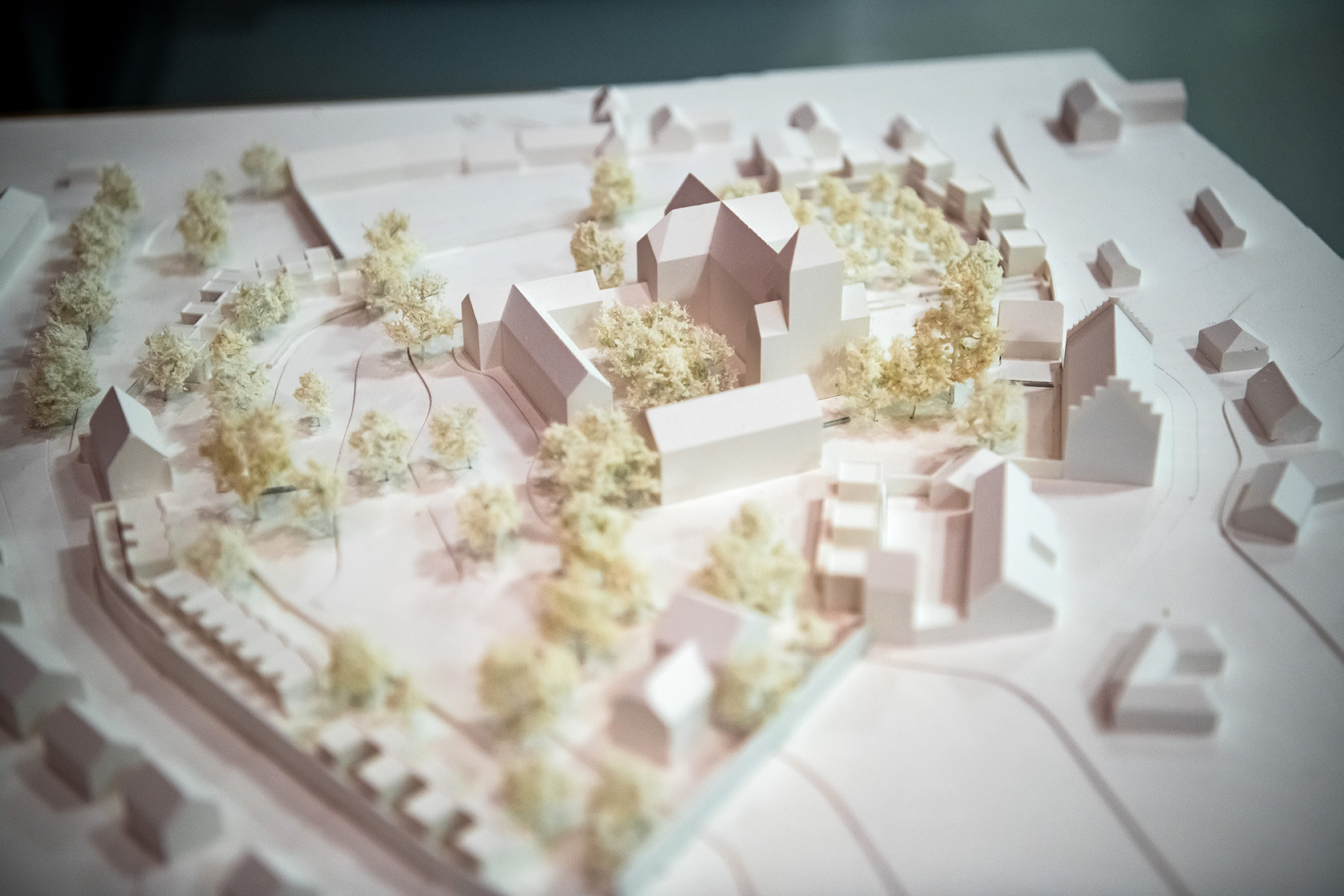 LOMA hat reiche Erfahrung im Umgang mit historischen Orten. Das Büro richtete die Burg Vlotho, das berühmte Hambacher Schloss und die Jugendburg Ludwigstein an der Werra auf eine zeitgemäße Nutzung aus. Gegenwärtig arbeiten die Architekten am Kloster Memleben in Sachsen-Anhalt und an der Burg Dringenberg bei Bad Driburg in Westfalen. „Wir schauen uns diese Orte genau an,“ schildert Petra Brunnhofer ihr Vorgehen: „Welche Geschichte haben die Orte? Wo kommen sie her? Welche Nutzung bietet sich an? Was soll mit ihnen passieren?“ Der Blick auf das Kloster auf der Breitenau habe schnell gezeigt, dass das Areal eine „eindeutige Zonierung“ brauche: Die Klosterkirche im Zentrum der Anlage, die derzeit von manchen Bauten umstellt ist, sei freizulegen, um sie als Nukleus des Ortes wieder erlebbar zu machen. Das Leben innerhalb der Klostermauern müsse mit dem Blick auf das Innerste des Klosters, auf die Kirche mit all ihrer Erhabenheit, möglich sein. „Und wir haben von Beginn an die Idee gehabt, dass in einem Kloster das Gemeinschaftliche eine zentrale Rolle spielt. Darum konnte es niemals um die Aneinanderreihung beliebiger Häuser gehen“, begründet Petra Brunnhofer die Entwicklung von drei Typen von Wohnhäusern. Allen Typen ist gemein, dass sie zwei Stockwerke haben und dass sie entlang der Klostermauer auf deren Innenseite stehen.