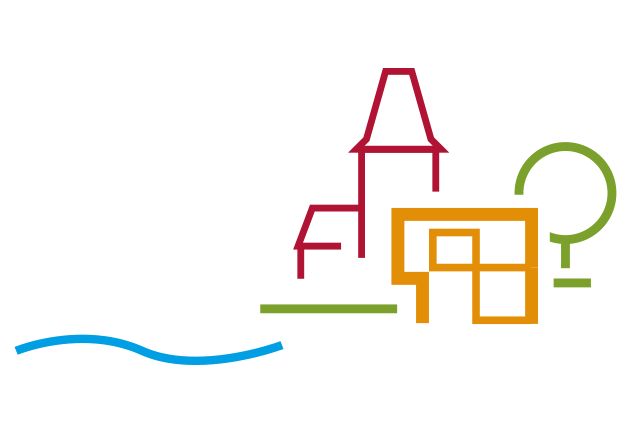 Je drei grüne Eichenblätter zu beiden Seiten stehen für die ehemals selbständigen Ortsteile.